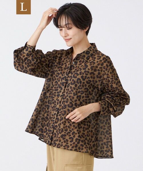 【L】【接触冷感】【マシンウォッシャブル】パンサープリントペプラムシャツ