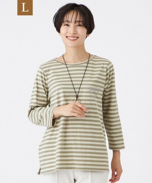 【L】【接触冷感】【マシンウォッシャブル】エンブロイダリーボーダーカットソー