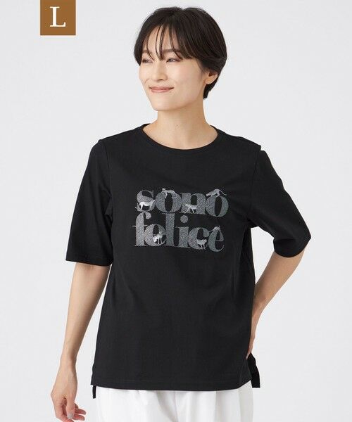 【L】【接触冷感】【ウォッシャブル】グリッターロゴプリントカットソー