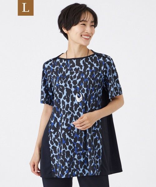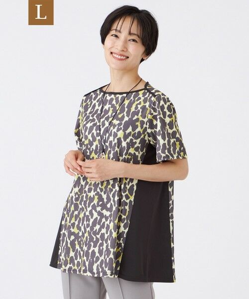【L】【接触冷感】【マシンウォッシャブル】パンサードットチュニックカットソーこちらはラージサイズです。EVEX定番のパンサー柄をプリントした、Aラインシルエットのチュニックカットソーです。衿ぐりや脇は無地にすることで、スッキリと仕上げました。【素材】さらっとした手触りのポリエステルスムース素材を使用しました。強燃糸によるドライ感、程良い肉感と、繊細なシルポリエステル100% エットを実現する適度なハリ感が特徴です。接触冷感機能付きです。(春夏展開商材)
