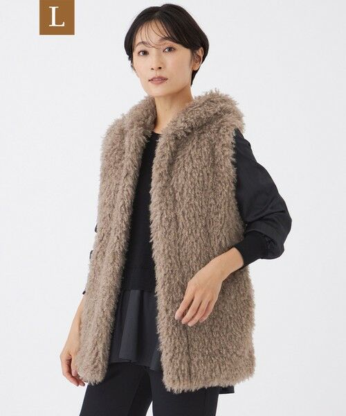 トレンドのファージレにフードをつけました。表情があり、手触りも柔らかなエコファーを使用。フードの程よいボリューム感で、顔周りを華やかに演出してくれます。シャツやカットソー、ニット、ワンピースなど合わせるアイテムを選ばずコーディネートを楽しんでいただけます。