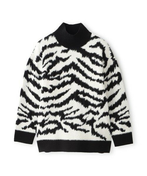 ゼブラ柄を肌触りの良いフェザーヤーンと、ウール混素材の袋ジャガードで表現。インパクトのある、EVEX by KRIZIAオリジナルのゼブラ柄を、上品でバランスの良いモノトーンカラーで仕上げました。ゆったりとした身幅や、肩を落としたドロップショルダー仕様が、トレンド感のあるシルエットで大人の女性が着やすいデザインに仕上げています。柔らかな質感と軽やかな着心地で、エレガントからカジュアルまで、ボトム次第で様々なテイストを楽しめます。