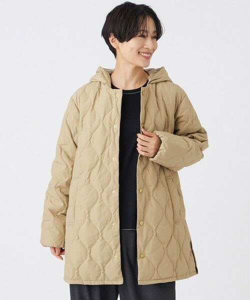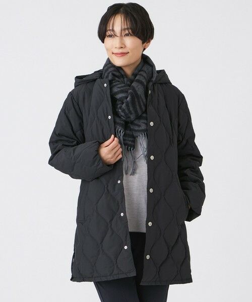 【L】【ウォッシャブル】キルティングフーデッドダウンコート