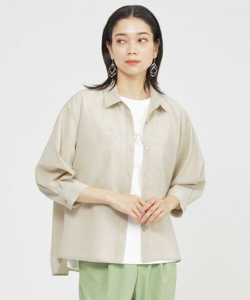 【接触冷感】【UV対策】【ウォッシャブル】リネンライクタンブラーショートブラウス