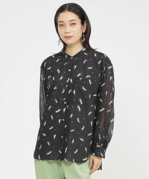 クラフトパンサー柄のプリントが施されたシャツです。袖がシアー素材なので清涼感があり、春から夏まで活躍するデザインです。ふくらみ感のある袖が柔らかさを感じさせ、程良いカバー感のあるサイズと丈は、スタイリングしやすくモダンな印象に仕上がっています。