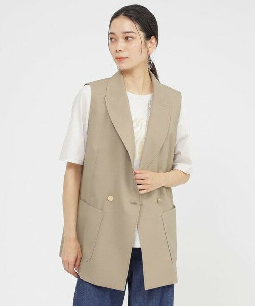 【SANYO Style EDITION掲載】【接触冷感】【防しわ】【ウォッシャブル】ドライポプリンテーラージレキレイ目でシャープなテーラージレデザイン。トレンドのダブル前がシンプルでありながら存在感のあるアイテムです。きれいめなコーディネートでも、デニムと合わせてカジュアルなコーディネートでも合わせられる万能アイテムです。【素材】すっきりとした表情と接触冷感が魅力の、暑くなる季節に向けてはピッタリな素材。シワになりにくいのも嬉しいポイント。(春夏展開商材)