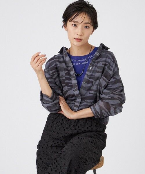【接触冷感】【ウォッシャブル】シアーボイルゼブラロングシャツ