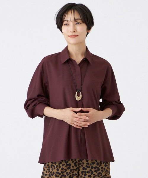【接触冷感】【マシンウォッシャブル】スパンローンペプラムシャツウエスト切り替えのペプラムシャツです。裾に向かって広がるAラインがウエスト周りをカバーしてくれます。ペプラムのシルエットに、深くとったタック袖が、シャープな印象を演出してくれるアイテムです。【素材】30/1のスパン糸を使用した、線の様なナチュラルな風合いの素材です。ポリエステルなのにレーヨンの様な柔らかさで、肌触りの良い素材です。接触冷感機能付きです。(秋冬展開商材)