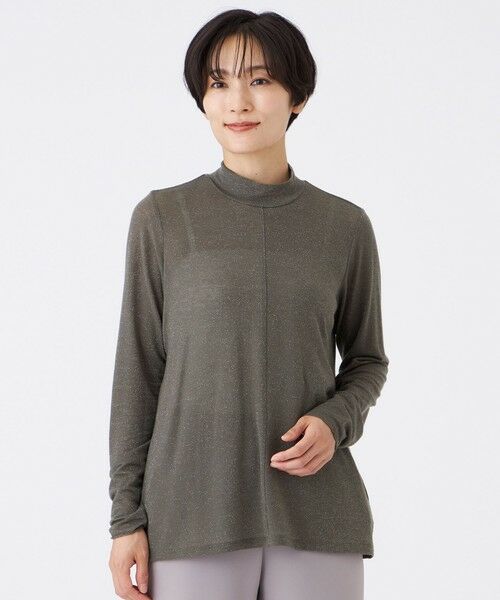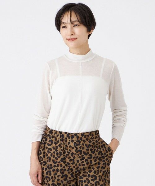 【ウォッシャブル】シアーラメジャージーハイネックカットソーシアーな素材感を活かしたシンプルなハイネックカットソーです。色々なアイテムのインナーに着用しやすいようにシルエットもコンパクトに仕上げました。シンプルに素材の軽さを楽しんでいただけます。【素材】非常にソフトな肌触りのジャージー素材を使用。ずっと着ていたくなるような快適な着心地です。さりげないラメがインナー使いした際にもポイントになります。透け感があり、シーズンレスに活躍します。(秋冬展開商材)
