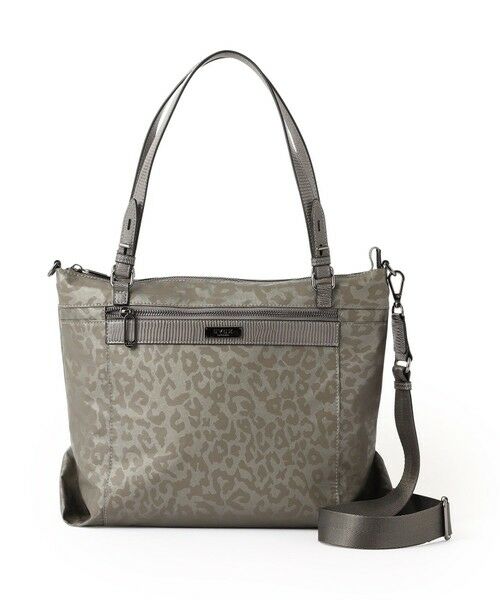 メタリックナイロンシリーズは25AWシーズンで初めてのレオパード柄をプリントして上品に仕上げた新しい素材を使用しています。トートバッグはスクエアに使いシルエットですが、A4サイズのものが収納できるサイズです。軽くどんな装いにもさっと持っていただけるデザインになっております。モデル(代表画像):H___ B___ W___ H___ 着用サイズ:__
