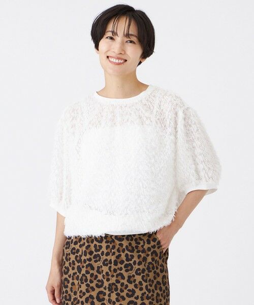【ウォッシャブル】ラメカットジャカードコンビプルオーバー