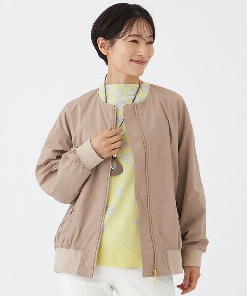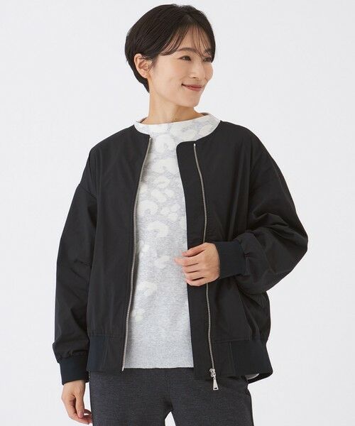 【はっ水・マシンウォッシャブル】グレイスメモリーノーカラーブルゾン大人のカジュアルスタイルにぴったりな、MA-1ライクのノーカラーブルゾン。襟はリブ無しですっきりと仕上げることで、コーディネートを選ばず活躍する便利なアイテムに。【素材】マットな光沢感が上品な印象の、高密度メモリータフタ。メモリーの張り感により、シルエットがキレイに保たれます。はっ水機能付きです。(秋冬展開商材)
