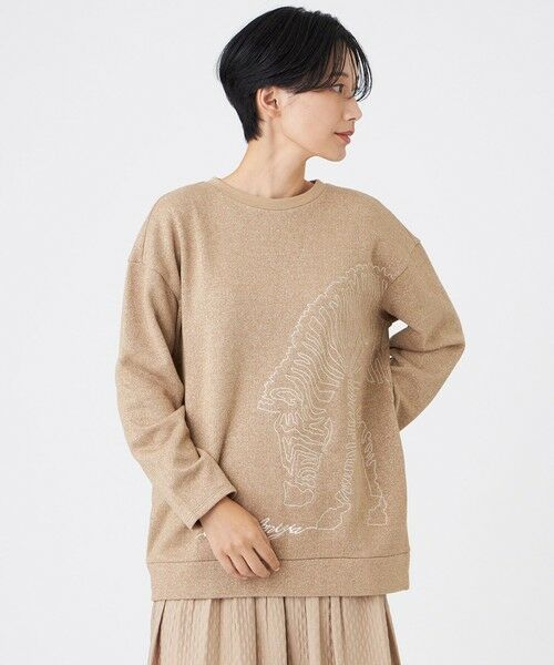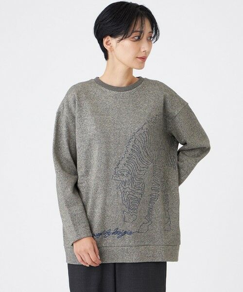 【ウォッシャブル】ゼブラモチーフラメスウェットプルオーバーラメ裏毛素材にシマウマのモチーフ刺繍を施した、ゆったりシルエットのスウェットプルオーバーです。キラキラと光るラメ裏毛の上に、同色系のしまうまモチーフの刺繍を施した、主役級アイテムです。【素材】(秋冬展開商材)