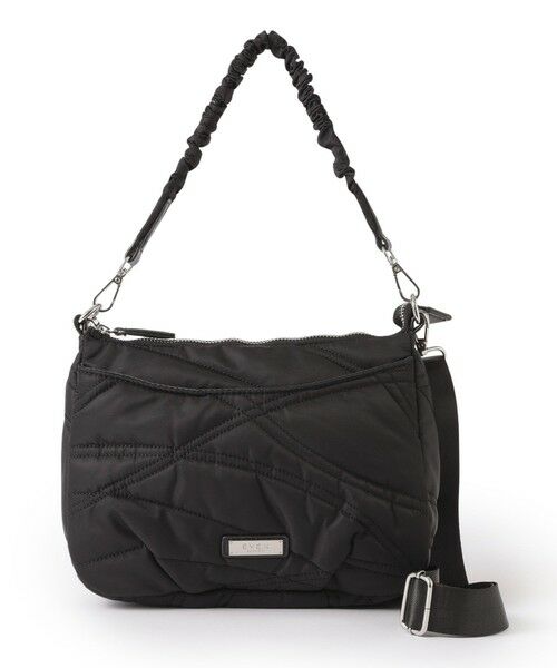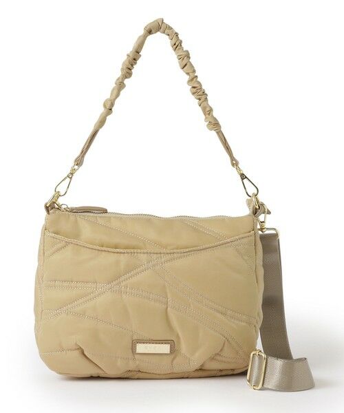 ソフトで光沢感のあるナイロン素材にオリジナルのウェーブキルト柄を施しました。前後ポケット、小さめながらもしっかりマチがあります。トレンドを意識したギャザーハンドルがポイントになっています。