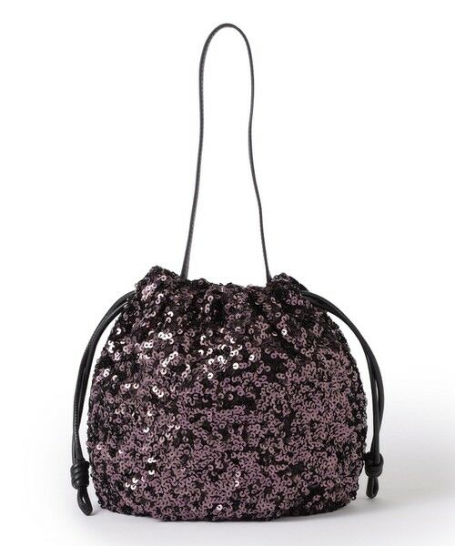 心くすぐるスパンコールバッグ。キラキラと輝く見た目で、スタイリングのワンポイントに。ハンドルはツヤのある合皮素材で肩にも楽にかけられます。ころんとしたフォルムのスパンコール巾着バッグはスタイリングを華やかにしてくれるアイテムになっています。