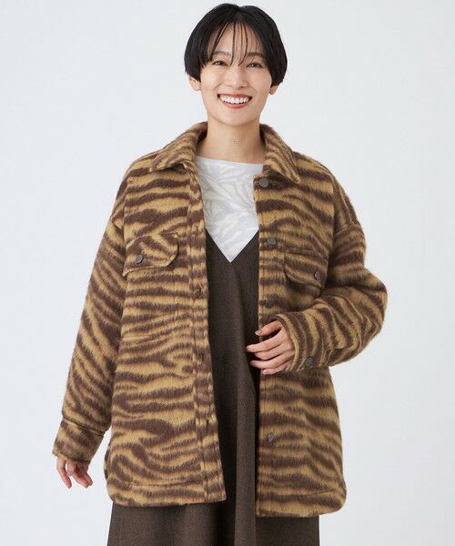 タイガースライバーシャツジャケット中間アウターとして秋から冬まで活躍するシャツ型アウターのCPOジャケット。ゆったりとリラックスしたシルエットに胸のフラップが特徴的なデザインです。【素材】タイガー柄のジャカードをスライバーニットで表現しました。糸として撚らずスライバーの状態で編み立てることで、空気をたっぷり含み、ボリュームがありながらも軽く、暖かさと柔らかさを感じられる素材です。※スライバーはデリケートな素材ですので、バッグ等の摩擦にはお気をつけください。(秋冬展開商材)