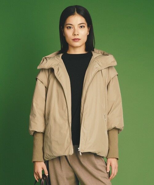 【SANYO Style EDITION掲載】【ウォッシャブル】2WAYスムースタフタダウンジャケットステッチレスでスポーティーな雰囲気の軽量ダウンジャケットに、袖取り外し可能なギミックを加えました。袖を外すとダウンジレになり、2WAYで楽しんでいただけます。柔らかな丸みのあるフォルムと、袖口のロングリブがアクセントに。【素材】ライトウエイトのメモリータフタを使用しています。程よい張り感でシルエットがきれいに出ます。(秋冬展開商材)