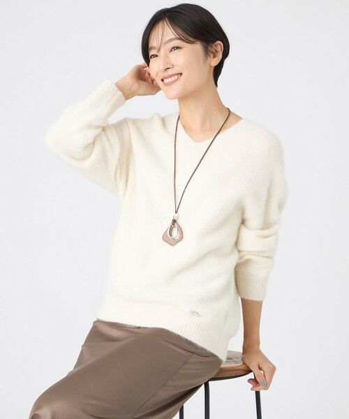 ウールとフォックスの混紡糸を、特殊なファー起毛加工で極上の手触りに仕上げたニットプルオーバー。袖口のパフスリーブやボトムスとの相性の良いレングスなど、カジュアルになり過ぎない洗練さをプラスしました。着心地、肌触りの良さ、温かさ、軽さが魅力のアイテムです。