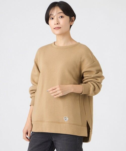 【カタログ掲載】【ウォッシャブル】タイガーパッチ裏起毛スウェット内袖に2本入れたタックによる構築的なシルエットの裏起毛チュニックプルオーバー。脇にはテレコをはめ込み、裾は共地で切り替えることで、カジュアル過ぎない大人も着れるスウェットに仕上げました。タイガーパッチのワンポイントも、デザインと相性良く存在感を放っています。【素材】ふんわりとしながらもしっかりとした手持ち感の裏起毛素材。軽くてソフトな肌触りのよい仕上げが特徴です。(秋冬展開商材)