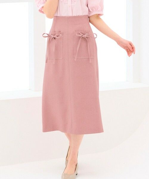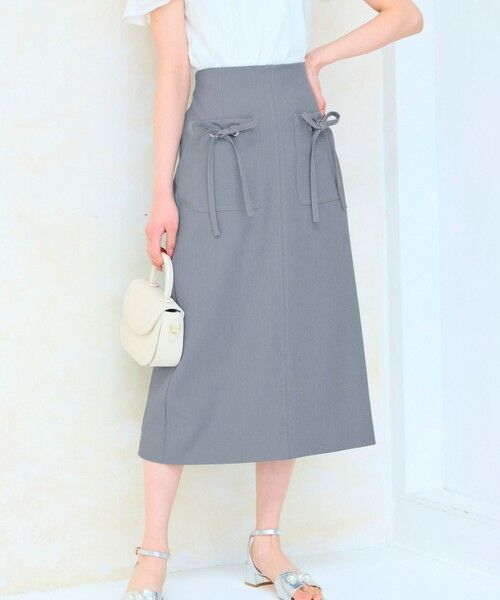 今年らしいアウトポケットのデザインにリボンディテールがプラスされたデイリーにもオフィス使いにも着られるスカート。