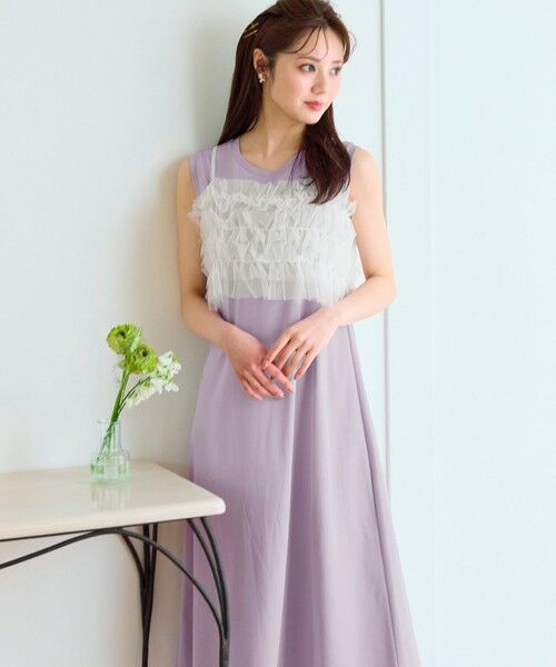 シンプルなカットソーワンピースに、ふんわりチュールキャミソールをレイヤードしたセットアイテムが登場!ワンピースは楽ちんな着心地ながら、すっきりとしたシルエットで1枚でも可愛く決まる優秀デザイン。チュールキャミにはフリルをたっぷりあしらい、動くたび揺れる立体感がとびきりキュート。ほどよく甘く、でもラフすぎないから、お出かけにもぴったりです。真夏もさらっと着られるカットソー素材で、オシャレと快適さも両立! いつもの夏コーデに“可愛い”をプラスしてくれる、イチオシのセットワンピです。