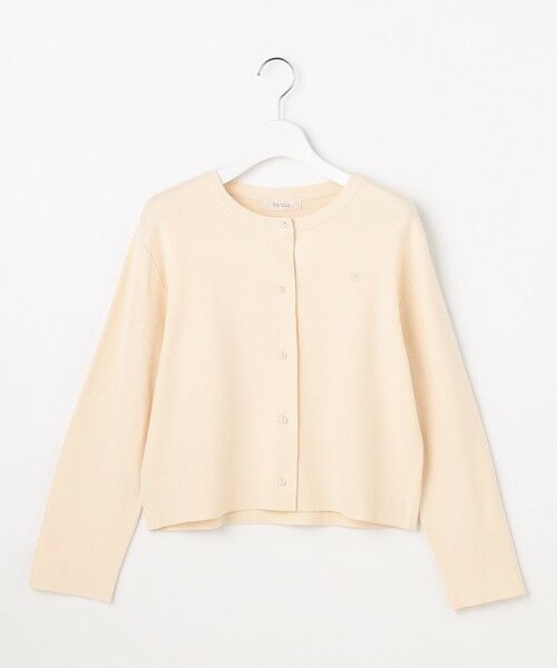 上品なパールボタンでほんのりした甘さときちんと感を演出する、大人フェミニンなニットカーディガン。程よい丈感とすっきりとしたクルーネックが女性らしさを引き立て、スカートにもパンツにも好バランスで合わせられる万能アイテムです。左胸にさりげなく施された刺繍がアクセント。フロントボタンをすべて閉じてプルオーバーとして着ても、さらりと羽織っても、洗練された印象に仕上がります。カジュアルからお仕事まで、気分やシーンに寄り添ってくれる1着です。