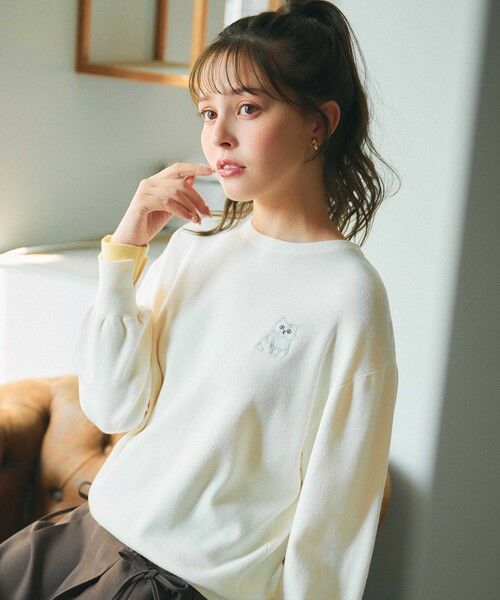 猫カフェMOCHAとのスペシャルコラボニットが登場!Feroux デザイナーが一目惚れした渋谷公園通り店の人気者ペルシャ猫「しらたま君」を胸元の刺繍で表現。ふわふわの毛並みや愛らしい表情を丁寧に再現した刺繍は、着るたびに癒される“推し猫”デザインです。ニットは着回しやすいスタンダードなシルエットで、衿元はシンプルなクルーネック。袖口には配色のレイヤード風デザインをプラスし、さりげない可愛さを添えました。さらに裾の後ろにスリットを入れ、軽やかさもアップ。猫好きさんにも、ちょっとした遊び心が欲しい方にもおすすめの1枚です。