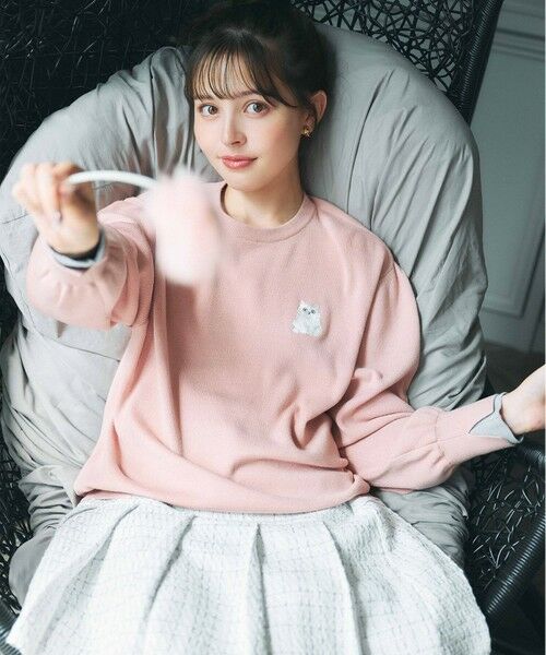 猫カフェの人気猫しらたま君を刺繍で再現。ニットはソフトな肌触りがストレスフリーな着心地です。