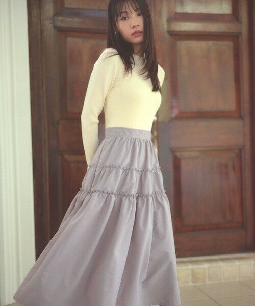 スカート部分は軽やかな布帛素材を使用し、3段のティアード切り替えにあしらった小さなフリルがポイント。動くたびに揺れるシルエットが女性らしさを引き立てます。カラーはネイビーのワントーンでまとめた上品な1色見えと、オフ×ブルーの配色デザインをご用意しました。
