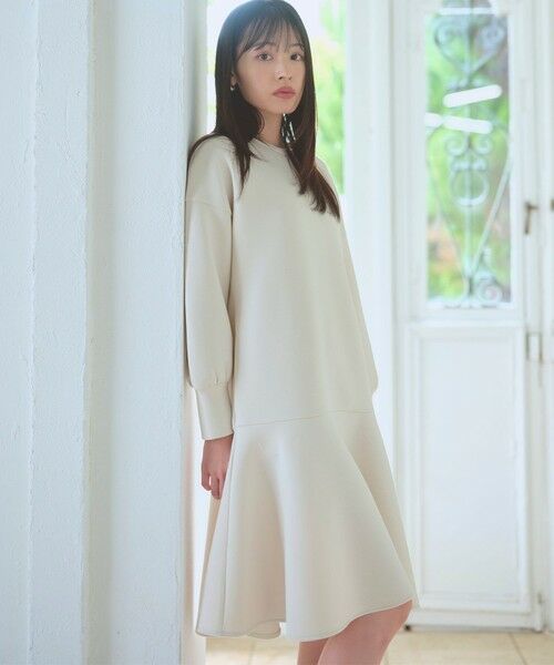 ロングブーツからスニーカーまで、1枚で完結する万能ワンピース。パールのネックレスや、パンプスを合わせれば、お洒落上級者のコーディネートが叶います。