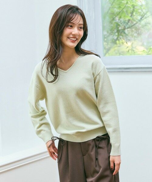 デコルテをすっきりと美しく見せてくれるVネックプルオーバーニット。シンプルなデザインながらも、程よいVあきで女性らしい抜け感を演出してくれます。ゆとりのあるシルエットで、身体のラインを拾いすぎずリラクシーな着心地を叶えつつ、きれいめな印象をキープ。日常使いからオフィスシーンまで幅広く活躍します。