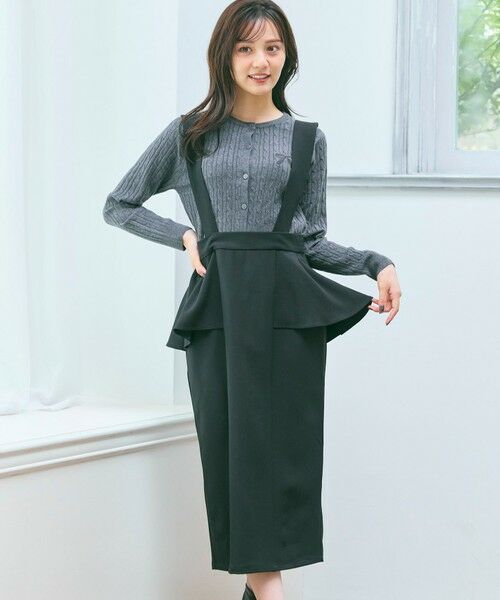 ウエストのペプラムデザインでスタイルアップ効果抜群のサスペンダースカート。腰位置を高く見せることで脚長&くびれ見えが叶います。太めのサスペンダーが甘さを抑えつつ、程よくモード感を演出してくれます。バックウエストはゴム仕様で、きちんと感がありながらも快適な着心地を実現。タイトすぎないセミタイトラインと後ろベンツ入りで動きやすさも◎。肩ひもは取り外し可能な2WAY仕様で、サスペンダースカート⇔ペンシルスカートとして幅広いシーンで着回せます。ボタンで長さ調整ができるので、インナーやシューズに合わせたバランス調整も自在です。