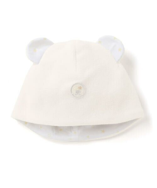 クマさんの耳がとってもキュートなベビー用フリースの男女兼用ニットキャップ。
