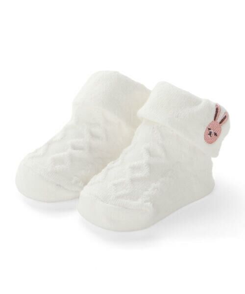 可愛らしいウサギのティオンちゃんの刺しゅうが足元に遊び心を添える、折り返しデザインの女の子用ソックス。