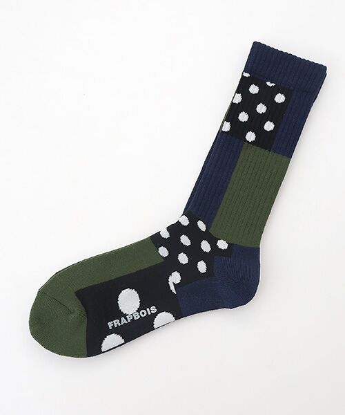 【素材】適度な膨らみと発色の良さが特徴の糸を使ったスポーツタイプのソックス。【デザイン】カラーブロックのデザイン。部分的にドット柄が入っているのがポイントになっています。底がパイル仕様になっており、クッション性があります。Fサイズ:24~27㎝【ブランド情報】FRAPBOIS/フラボア2001年にブランドスタート。「大人げない大人の服」をコンセプトに、大人が着るリラックスしたデイリーウェアを提案するコレクションブランド。レディースとメンズのアイテムをご用意しています。FRAPBOIS official website