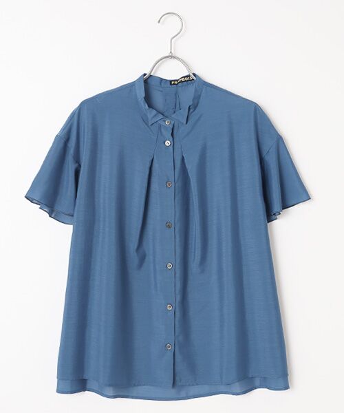 衿はタキシードシャツの様なデザインでしっかり感が有りながらも顔まわりをスッキリと見せてくれます。