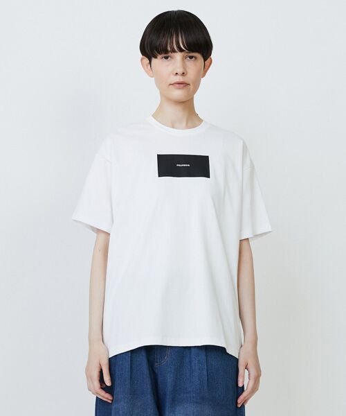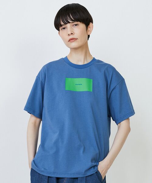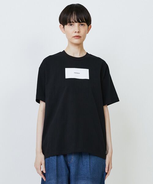 リラックスシルエットのTシャツにオリジナルのボックスロゴプリントを入れ込んだデザイン。