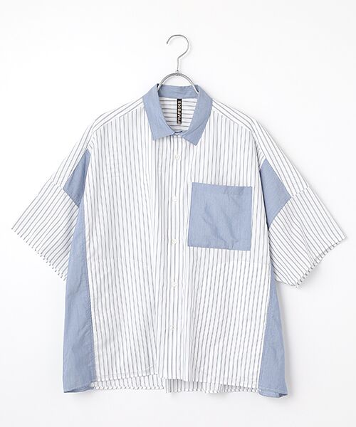 細番手の糸を使ったストライプ生地と無地調の生地を組み合わせたデザインシャツ。