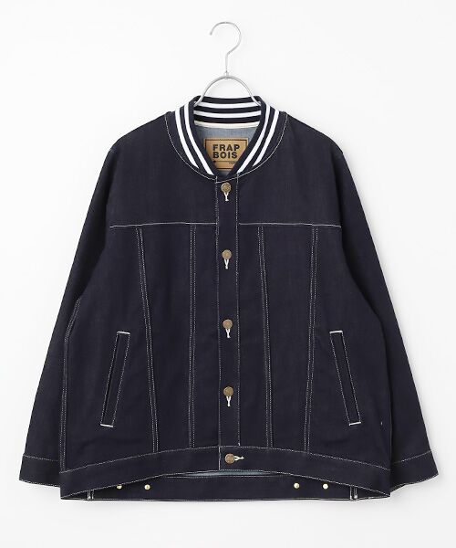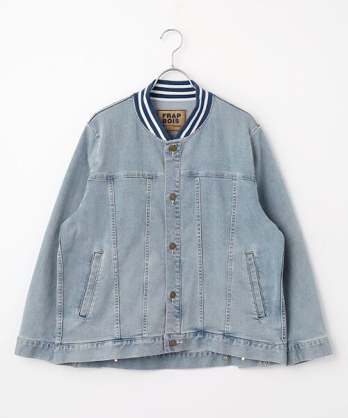 デニムジャケットのデザインをベースにしてシルエットにこだわり、スッキリとしながらも程よいヌケをつくり、衿には編み立てのライン入りリブでブルゾンの要素をプラスしています。