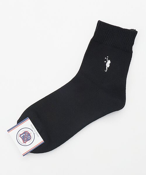 タツノオトシゴの刺繍がポイントの足首が隠れる長さのソックスです。高い吸汗性があり天然系抗菌防臭加工も施されています。 ※ラッピングツール付き商品となります。ラッピングはされておりません。予めご了承のほどお願いいたします。