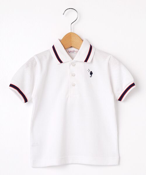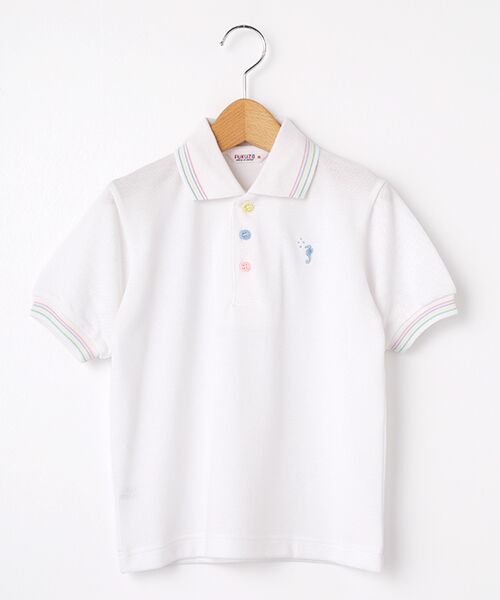 襟と袖の部分にラインが入った鹿の子生地のポロシャツです。生地の表面に凸凹があり、通気性が良いのが特徴です。洗濯機使用可。(乾燥機使用不可)