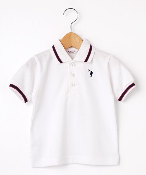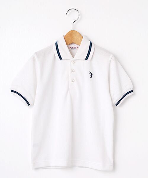 襟と袖の部分にラインが入った鹿の子生地のポロシャツです。生地の表面に凸凹があり、通気性が良いのが特徴です。洗濯機使用可。(乾燥機使用不可)