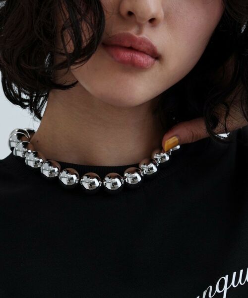 Design Pointメタルボ-ルパ-ツが存在感◎のコーディネートの主役になるネックレス。 モダンで華やかな雰囲気を演出できるアイテムです。※照明の関係により、実際よりも色味が違って見える場合があります。また、パソコン・スマートフォンなどの環境により、若干製品と画像のカラーが異なる場合もございます。本商品は、ご注文確定後に取り寄せにてお客様への出荷手配をさせていただきますので、お届けまでに7~10日前後かかる場合がございます。また、商品は他社サイトと在庫を共有しているため、ご注文いただいた商品が欠品となり、キャンセルとなる場合がございます。