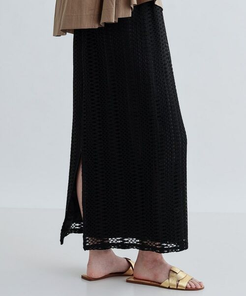 レース素材で仕上げた意匠感のあるタイトスカート。