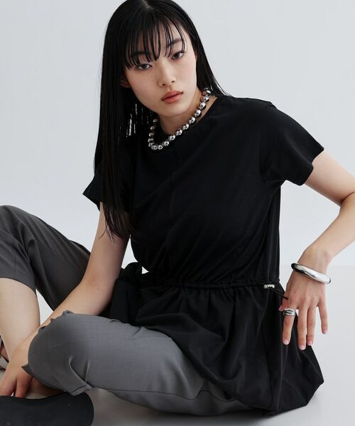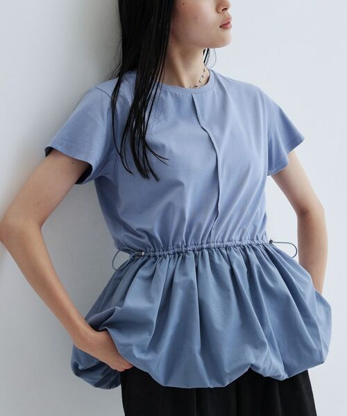 バルーンヘムのデザインが個性を引き立てるハーフスリーブトップス。