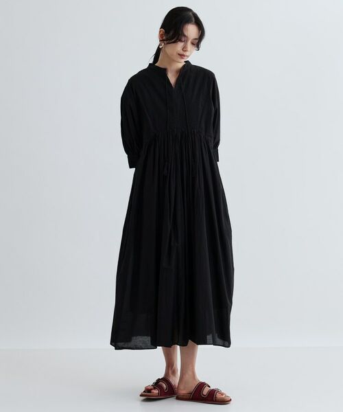 柔らかなコットン素材で仕立てられたこのワンピースは、リラックスしたシルエットが特徴的。
