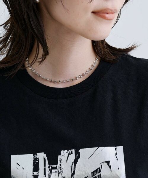 華やかな印象を与えるこのネックレスは、繊細なチェーンデザインとゴールドの輝きが特徴。