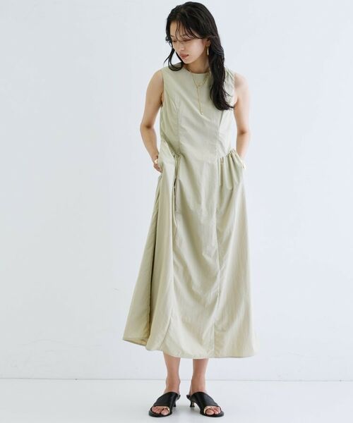 ミニマルなシルエットが印象的なこのワンピースは、タイトなラインとボリューム感の絶妙なバランスが魅力。
