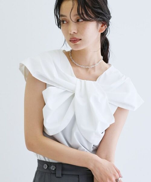 モード感を漂わせる洗練されたシルエットが特徴のブラウス。