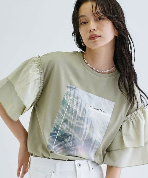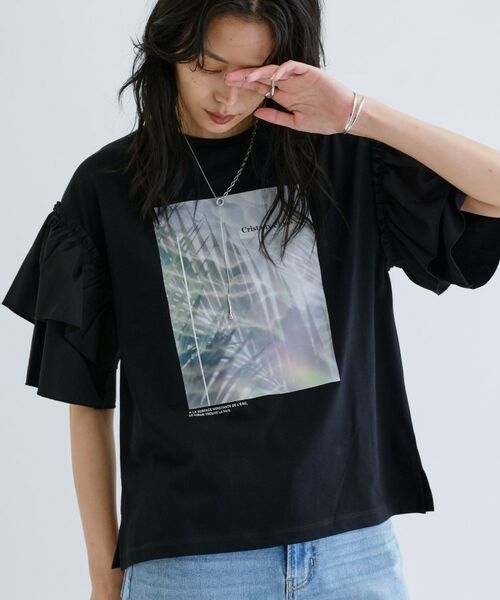 ファブリックフリル袖が印象的なカットソーは、シンプルながらも目を惹く存在感を放つ一着。
